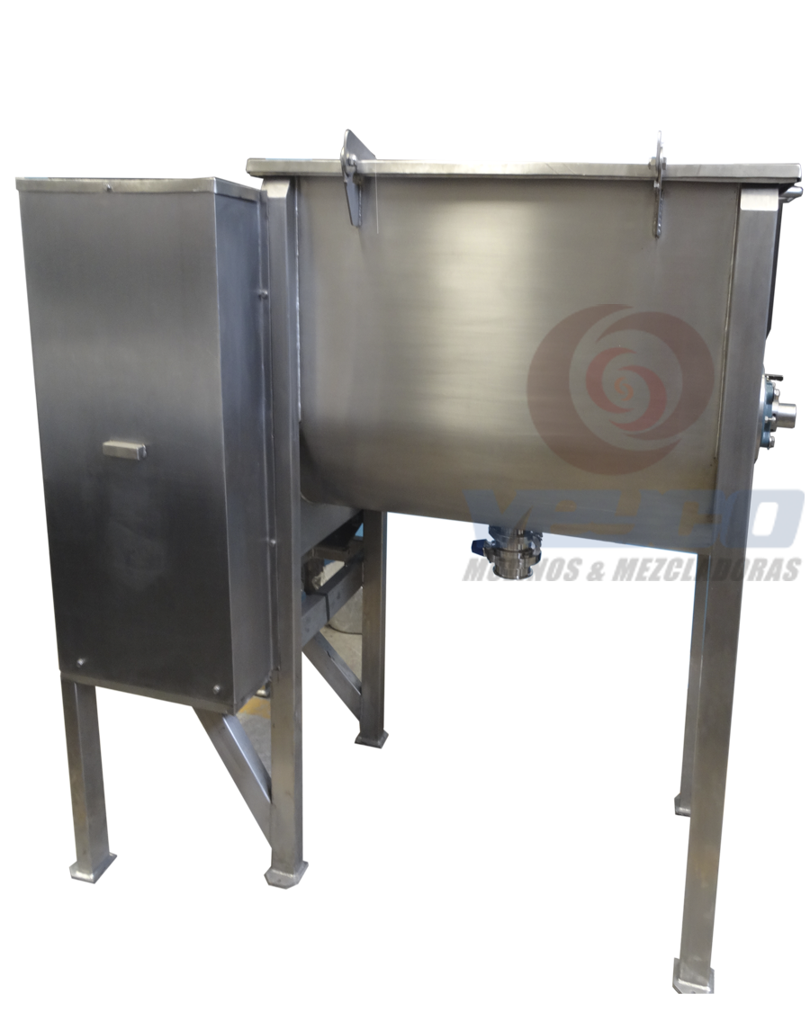 Este equipo se forma de una tina horizontal en forma de U y un mezclador de cinta alineado sobre un eje, el mecanismo de sucesión del equipo se refiere a que una de las cintas empuja lentamente los sólidos hacia atrás, mientras que la otra cinta los desplaza rápidamente hacia adelante, mueve los materiales radial y lateralmente para asegurar mezclas a fondo en tiempos de ciclo cortos. Los agitadores de cinta se utilizan para mezclas que estarán entre el 30 – 90 % de la capacidad nominal del mezclador, cuentan con dos formas de mezclar los productos: